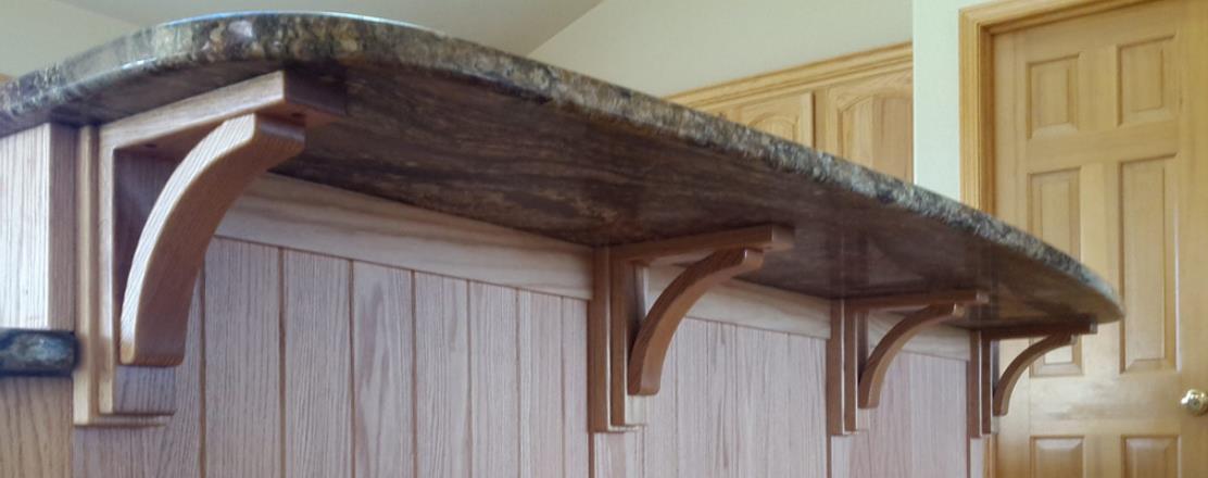 Additionalsupport members can include corbels, flat steel (3/8” by 3”) or a design element incorporating an apron and table legs. If you need help with an estimate,give us a call at (417) 258-2787 and ask for Doug, Holly, Mitchell or Sarah.